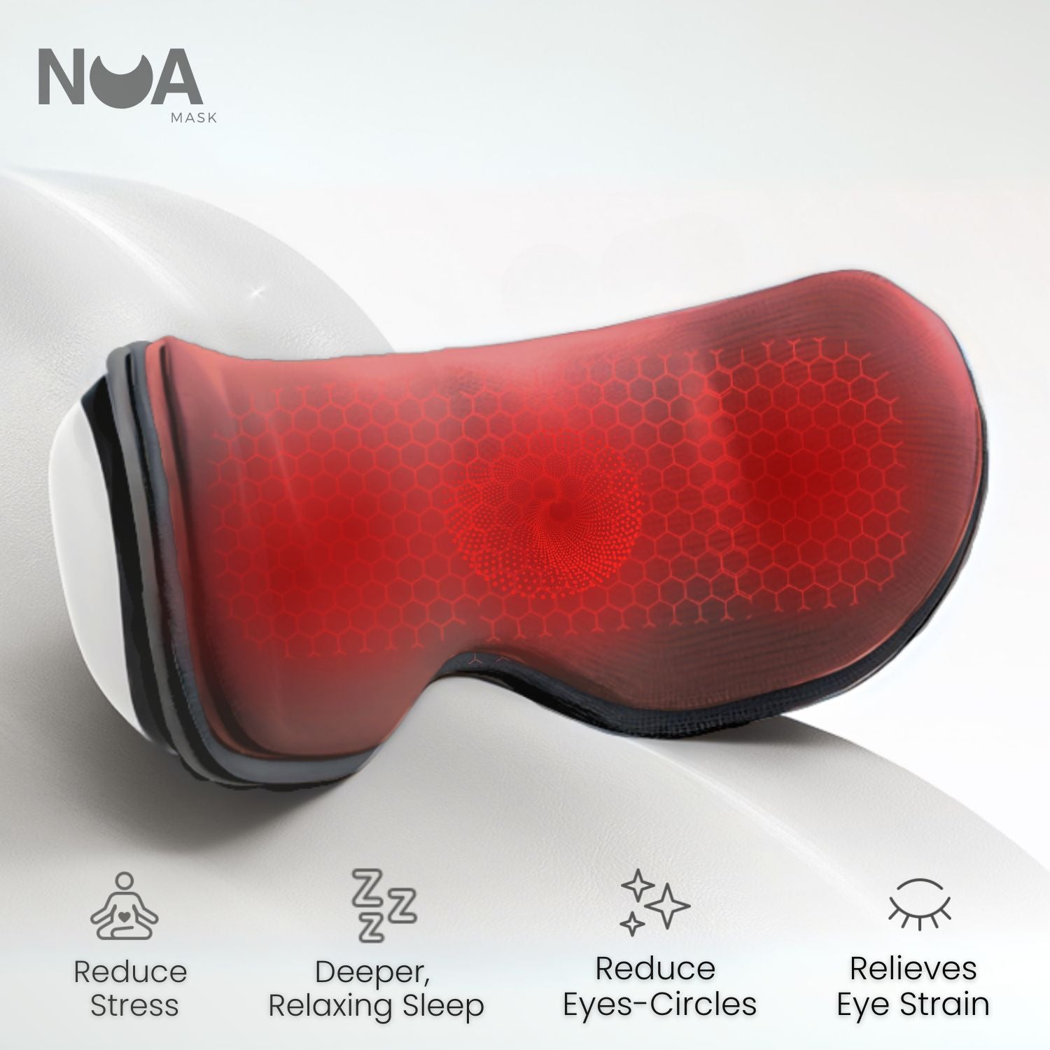 The Nua Mask features three massage modes: gentle relaxation, deep tension relief, and intermittent pulses to stimulate eye circulation.